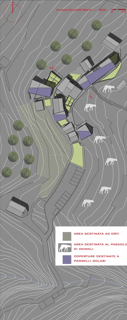 The project plans to recover the buildings of the village to establish the following functions: a tavern with accommodation, a social club with bar, a small dairy, stables, a sale point of typical dairy products and, and both houses of semi-permanent type and holiday houses to be rented for holiday periods.